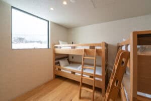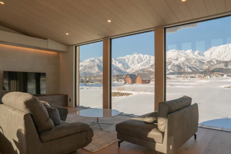 Designed for comfort and functionality, the chalet features three bedrooms accommodating up to eight guests and four contemporary bathrooms. The open-plan living and dining area is filled with natural light and creates an inviting space to relax after a day on the mountain. A fully equipped kitchen supports effortless self-catering, while the private sauna offers the perfect way to unwind. Additional amenities include modern appliances, quality furnishings, and a 4WD vehicle included with each stay for easy travel throughout Hakuba Valley.