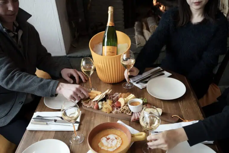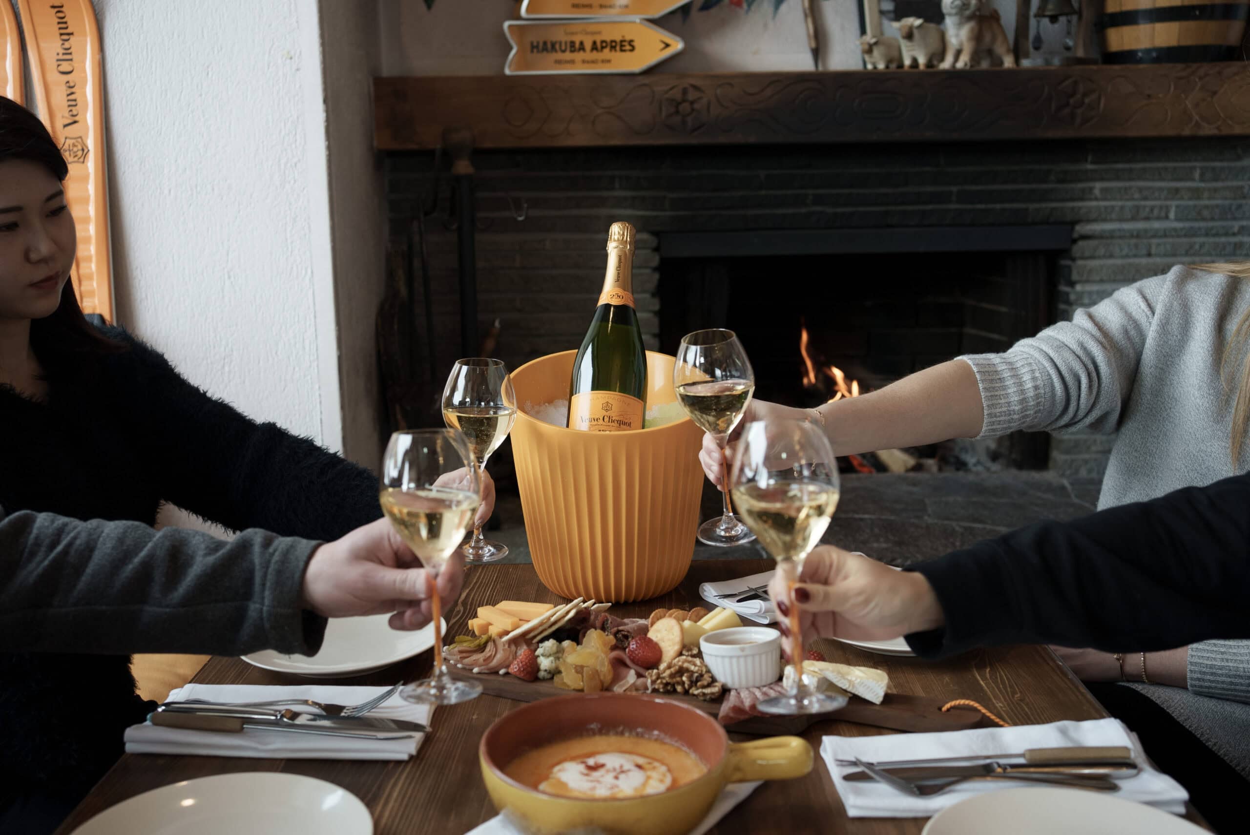 Indulge in Hakuba’s premier all-inclusive dining experience, the Veuve Clicquot Long Lunch, at The Marillen Restaurant & Bar. For ¥25,000, guests enjoy an exclusive 90-minute experience featuring unlimited flowing Veuve Clicquot champagne, alongside beer and cocktails. Savor this indulgence on a terrace with sweeping views overlooking the Nakiyama Slope at Happo-One Resort. Your drinks are perfectly paired with a selection of fresh salad, artisanal charcuterie, rich cheese fondue, and rich desserts. Please note: Reservations must be made a minimum of 24 hours in advance.