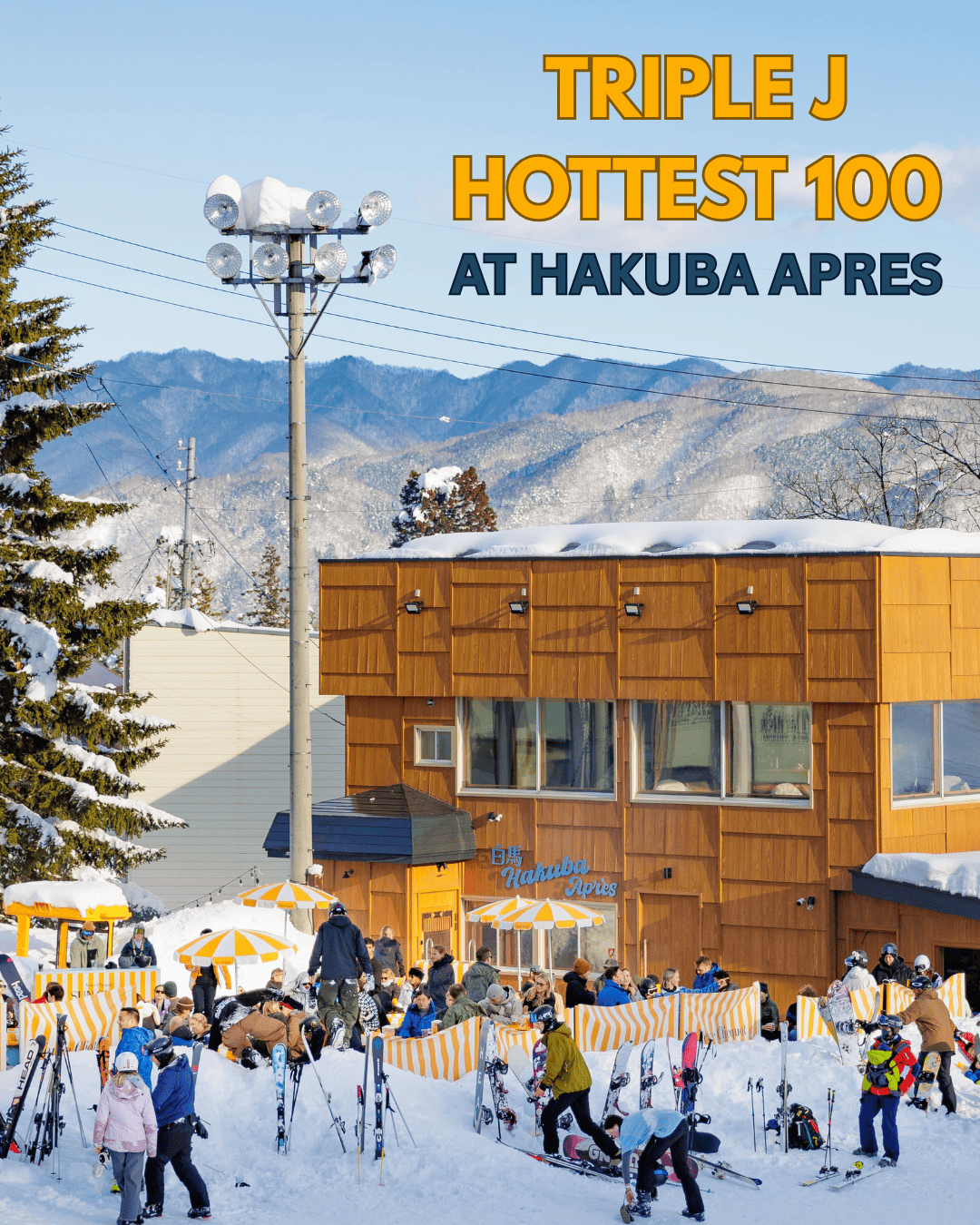 この冬、Hakuba Aprèsでは、オーストラリアの夏の名物イベント「Triple J Hottest 100」を雪の白馬にお届けします。最高の音楽、冷たいドリンク、そして白馬ならではの雰囲気とともに、一年を代表するベストトラックを一緒にカウントダウンして楽しみましょう。