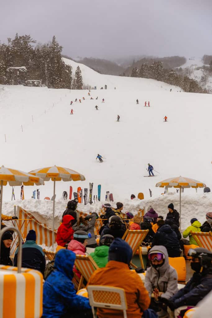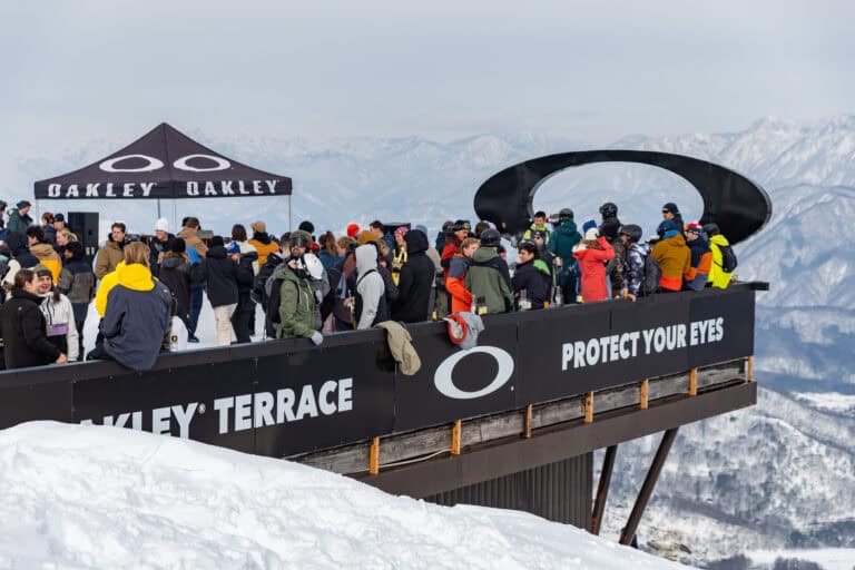 Oakley Terrace is a premier and certainly the highest après spot in Hakuba. Located on top of Happo-One (right next to the gondola), it turns into a lively party with DJs, dancing, and amazing mountain views. It’s the perfect place to keep your energy up after skiing or riding.