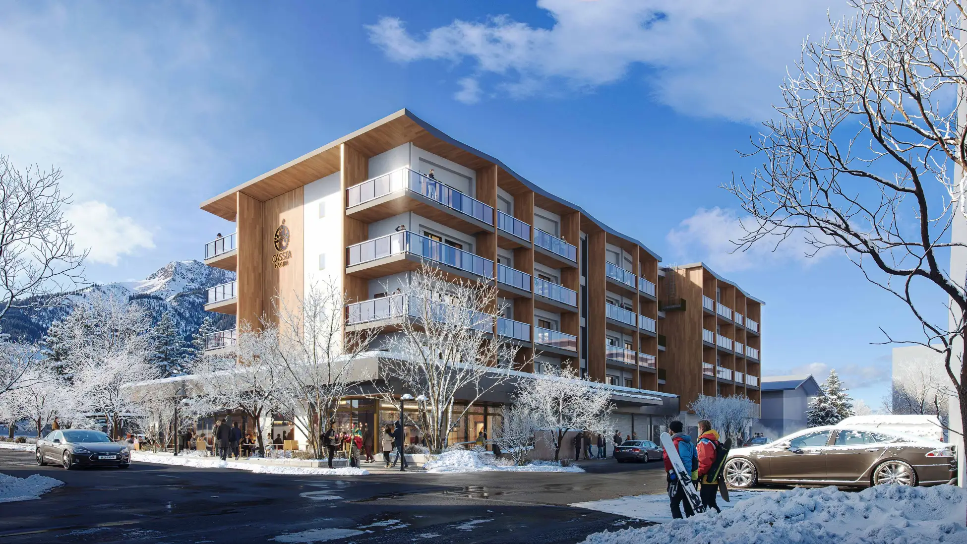 Located in the Echoland district, one of the primary villa areas of Hakuba Village, Nagano Prefecture. “Cassia Hakuba (tentative name)” is situated in a highly convenient location with nearby bus stops for circulating to various ski resorts. All guest rooms are equipped with kitchens and balconies, combining the advantages of both a hotel and a residence. It is ideal for stays ranging from one night to long-term stays for families and groups of friends.