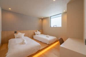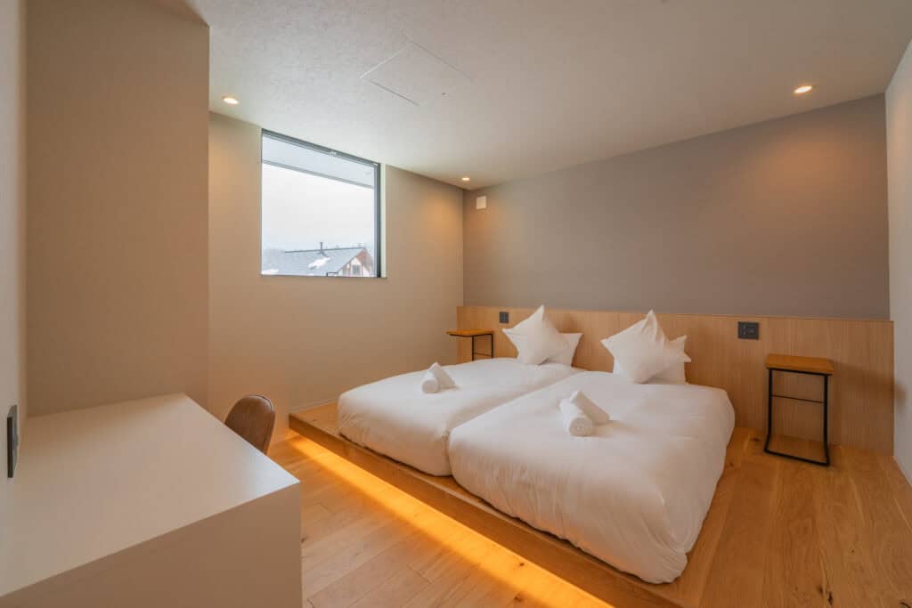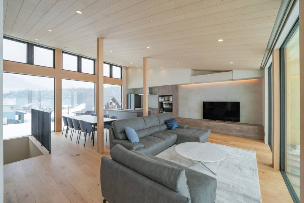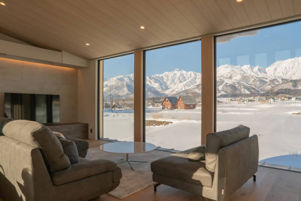Designed for comfort and functionality, the chalet features three bedrooms accommodating up to eight guests and four contemporary bathrooms. The open-plan living and dining area is filled with natural light and creates an inviting space to relax after a day on the mountain. A fully equipped kitchen supports effortless self-catering, while the private sauna offers the perfect way to unwind. Additional amenities include modern appliances, quality furnishings, and a 4WD vehicle included with each stay for easy travel throughout Hakuba Valley.