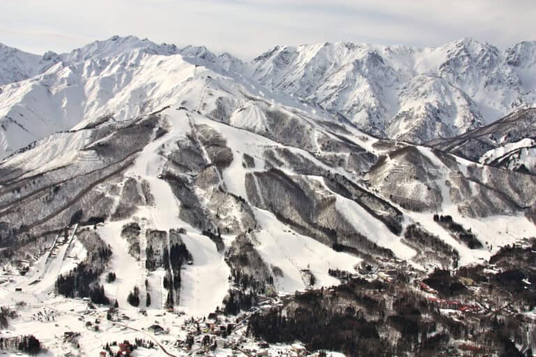 Happo-One’s the largest resort in the valley with the highest run at 2,696m and spreading to 4 base areas, providing everything advanced skiers could want: steep runs, high vertical drops, powder runs and a terrain park. There are opportunities for beginners, but the resort is much better suited for intermediate and advanced level skiers. Happo Village, at the foot of Happo-One, has various restaurants, hot springs, and shops.