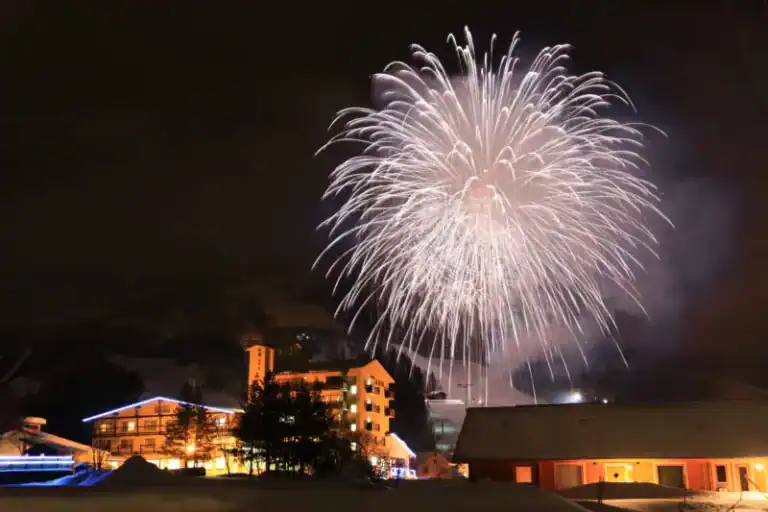 八方尾根の中山ゲレンデで開催される壮大なカウントダウンイベントで、新年を一緒に迎えましょう。真夜中の花火が夜空を彩り、マリレンホテルではゲレンデの麓でディナーを提供します。ライブ音楽や華やかな雰囲気の中で、花火を間近で楽しめる最高のロケーションです。