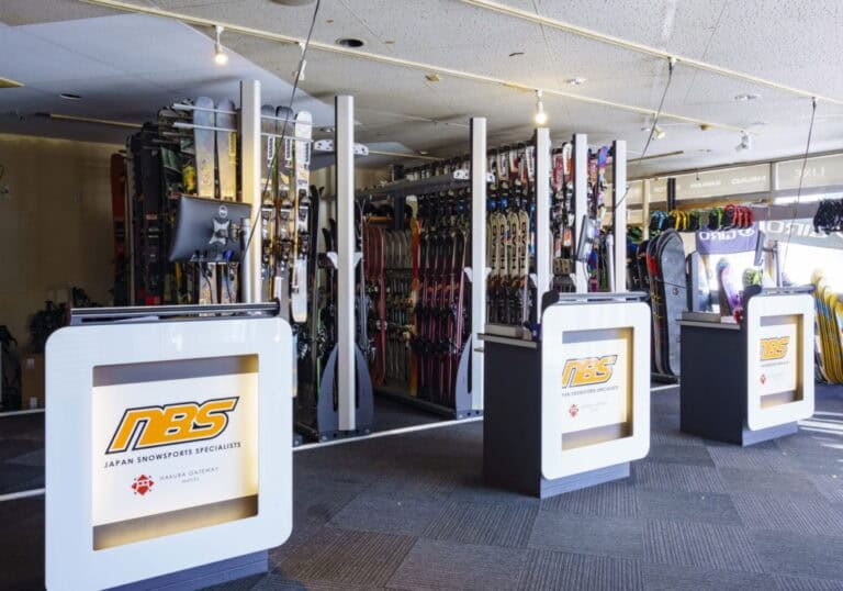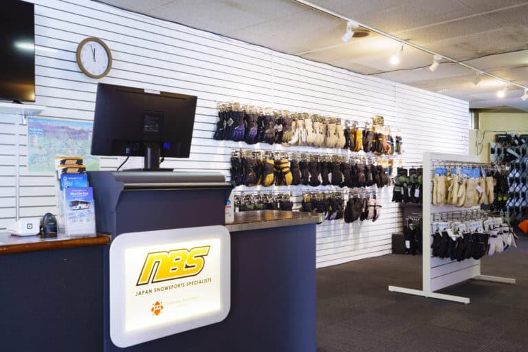 NBS Japan’s Hakuba storefront is conveniently located in the center of Happo Village, on the bottom floor of the Wadano Gateway Hotel. In addition to a wide array of premium ski, snowboard, and clothing rentals, NBS boasts a great retail section with gloves, thermal layers, apres boots, and other necessities for the mountain.